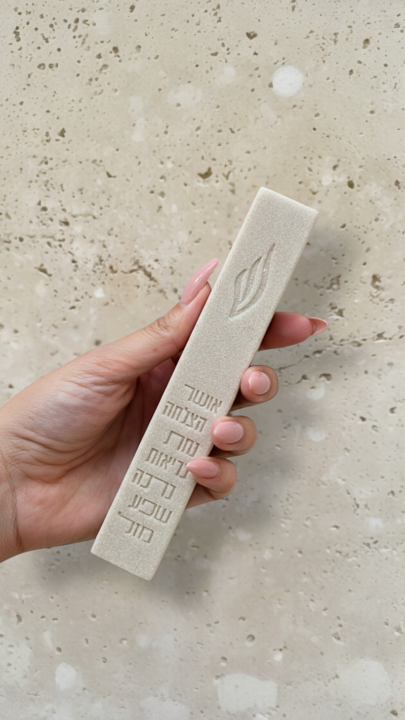 בית מזוזה דגם דמוי בטון דגם '7 ברכות' בצבע חול, עשוי פולימר קל ואיכותי