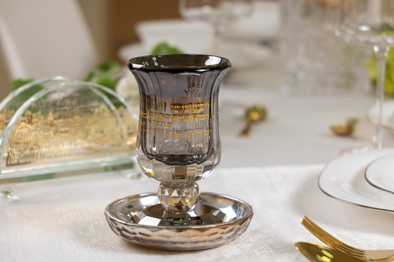 גביע קידוש מהודר עשוי קריסטל בצבע כסף