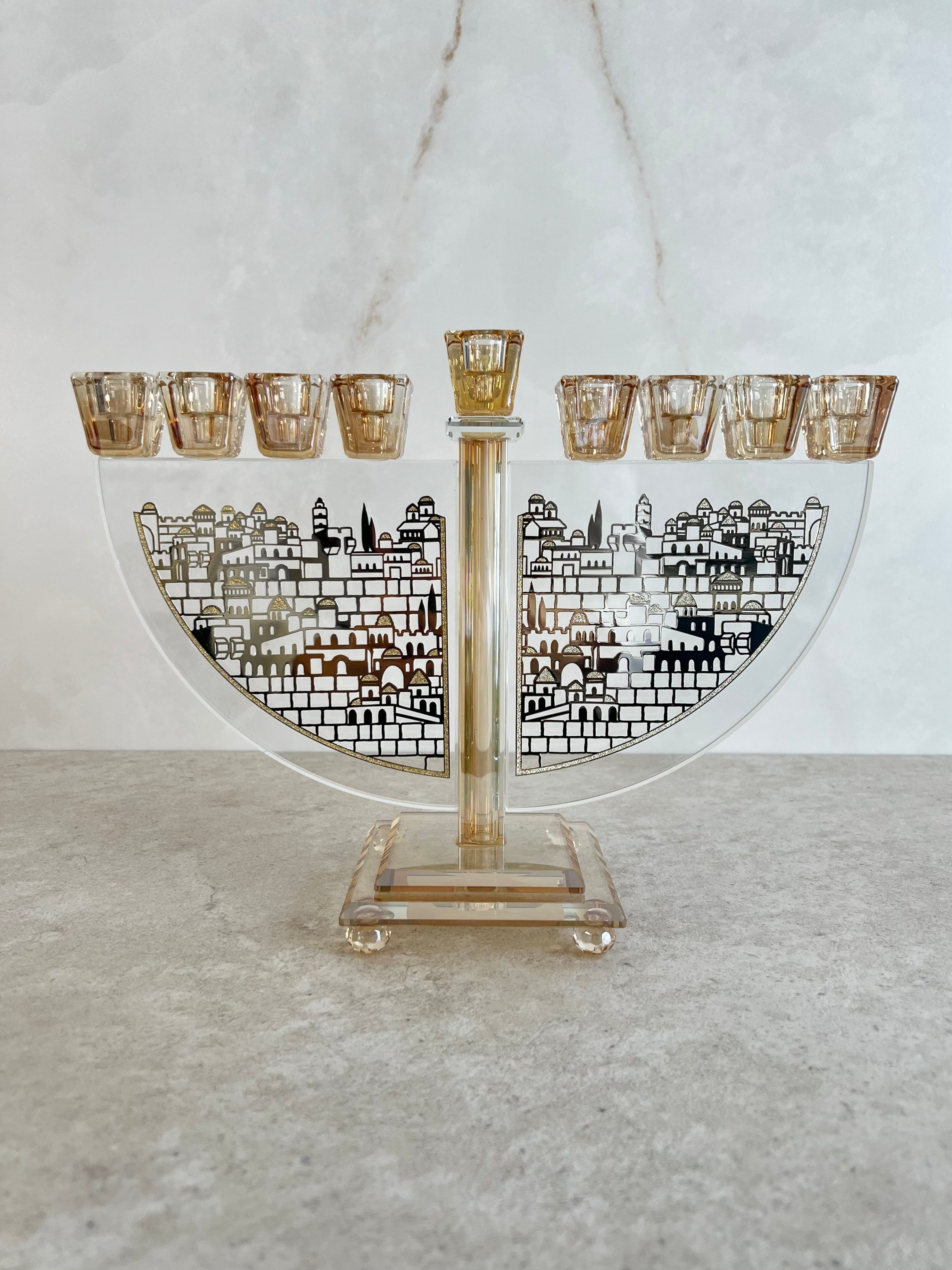 חנוכייה מהודרת מקריסטל - דגם ירושלים