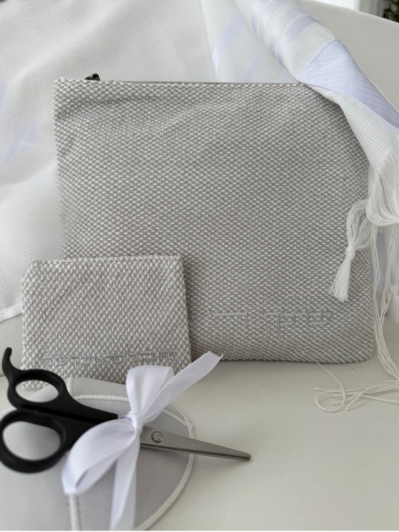 כיסוי לטלית חלאקה עשוי דמוי פשתן איכותי, הכיסוי מגיע עם נרתיק "התלתל הראשון שלי" ומספרים