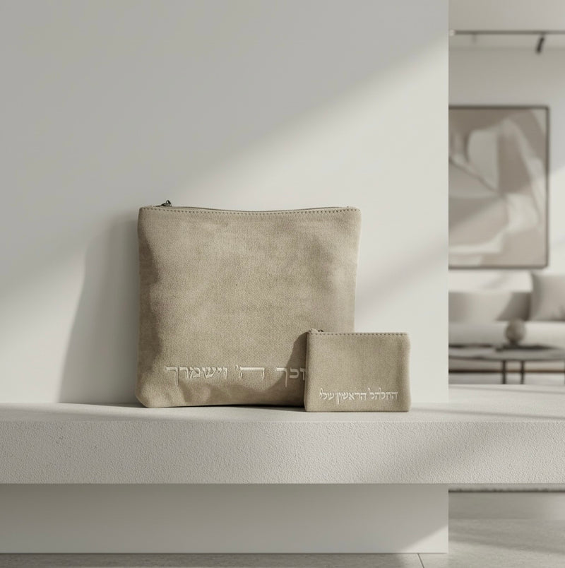 כיסוי לטלית חלאקה עשוי דמוי עור הפוך איכותי, הכיסוי מגיע עם נרתיק "התלתל הראשון שלי" ומספרים