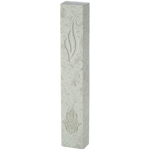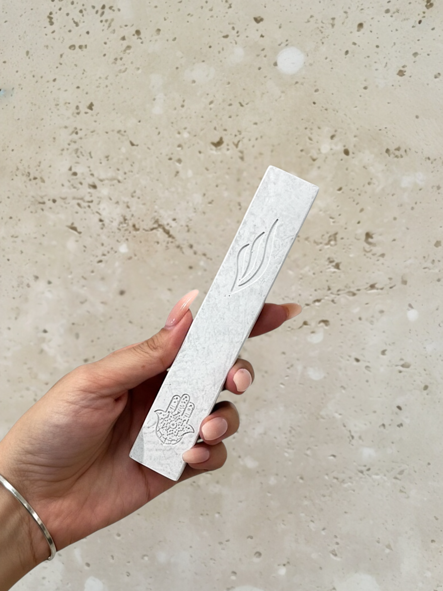 בית מזוזה דגם דמוי בטון דגם 'חמסה' בצבע לבן אפרפר, עשוי פולימר קל ואיכותי