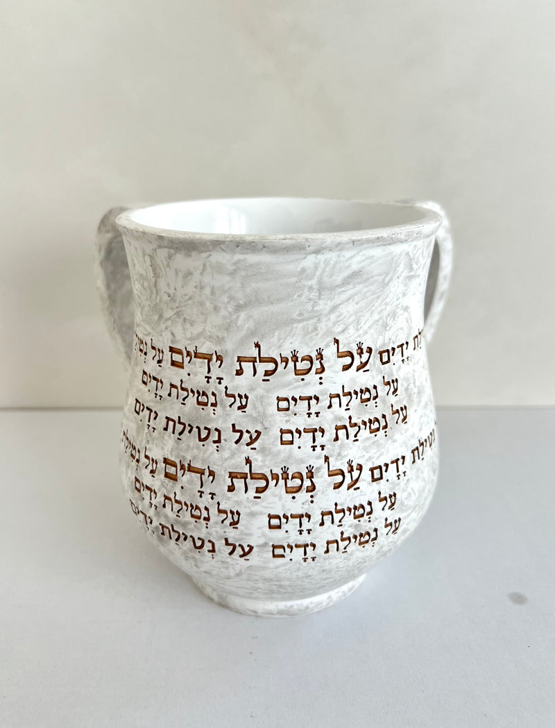 נטלה עשויה פוליריזן דמוי בטון עם חריטת "על נטילת ידיים" בצבע חום ברונזה