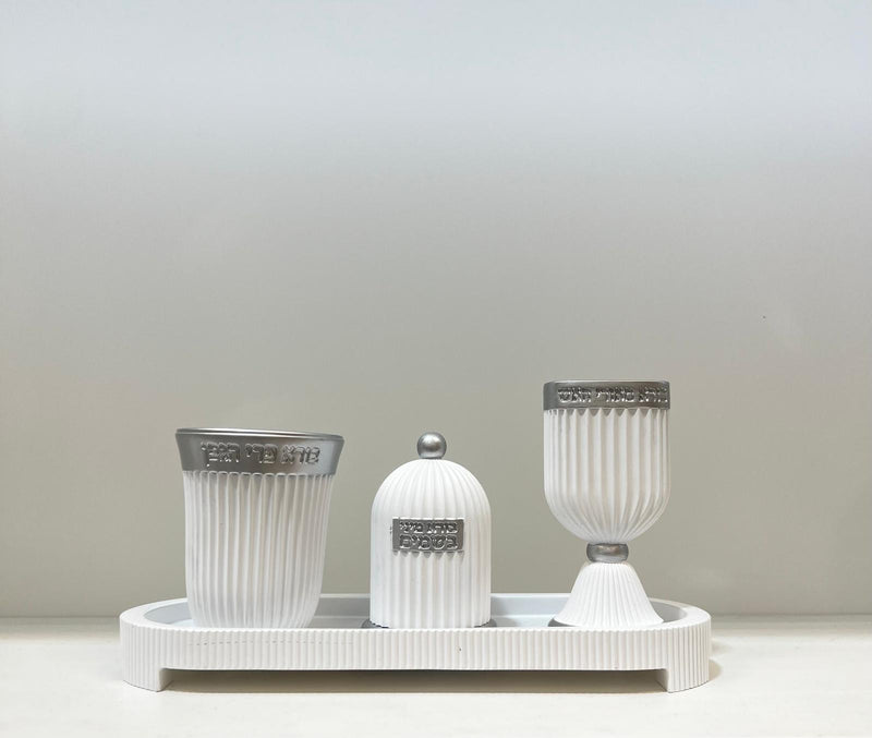סט הבדלה מהודר - דגם לבן וכסף